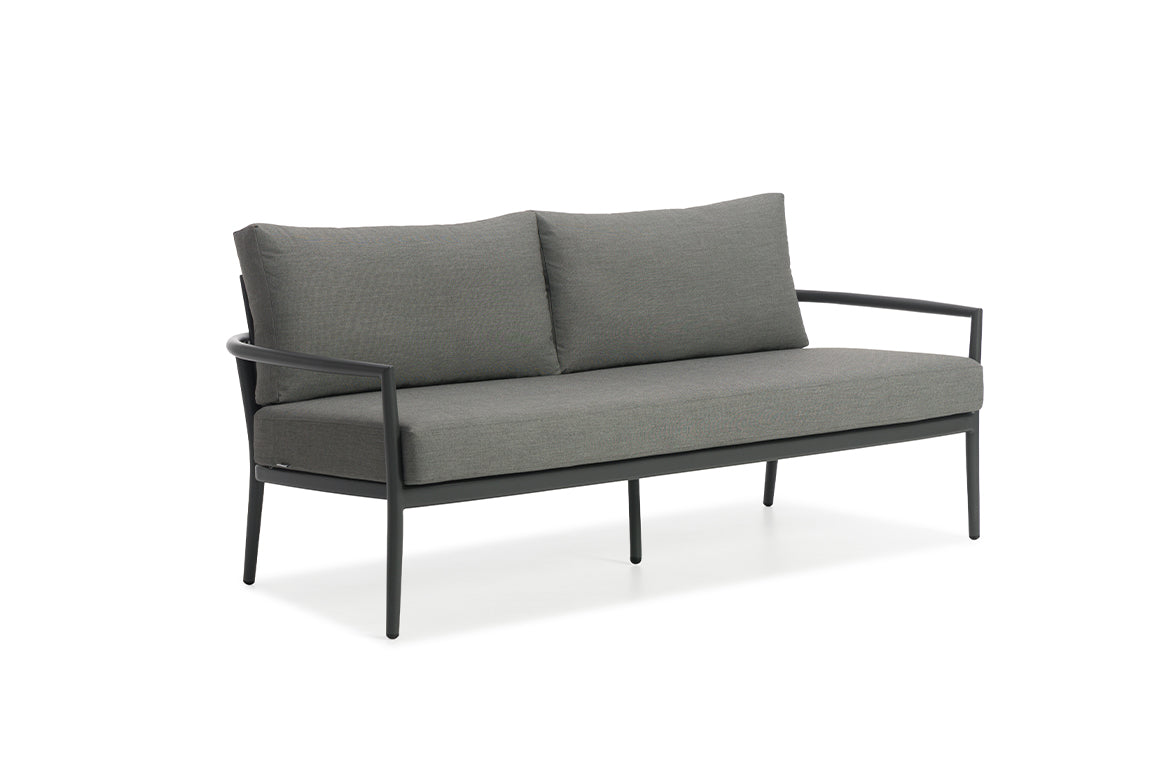 Dimensiones: Ancho 187 cm / Profundidad 83 cm / Alto 71 cm / Altura del asiento 46 cm / Altura del reposabrazos 59 cm / 23 pulgadas