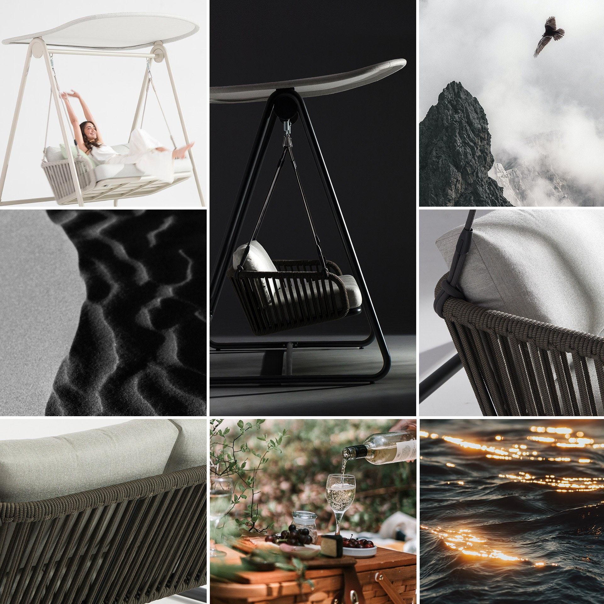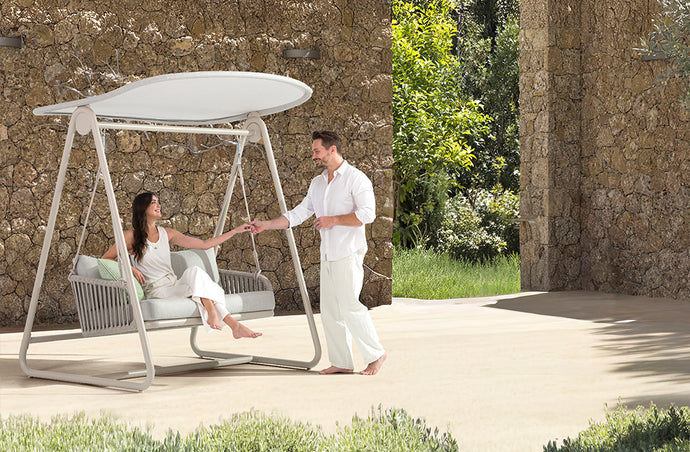 When comes the time to sit, relax and dream, GOOD TIMES is surely a great place to go to. Its elegant structure with a protective roof and comfy cushioning clearly invites you to do nothing but...gently balance yourself or simply stand still listening to nature!